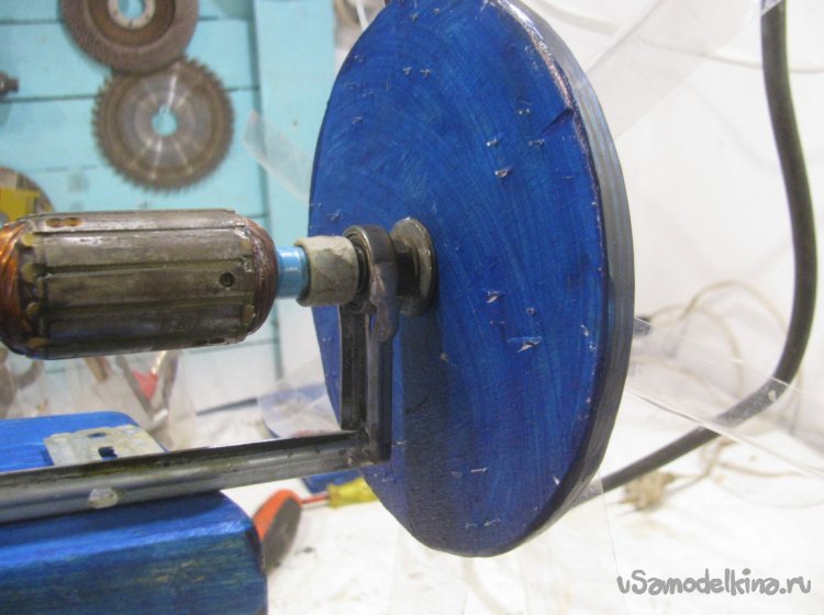Вот с основной лучше придумать что-то другое, у меня это круг из фанеры, так как он сделан без токарки, есть биения. Но их можно устранить, если немного повозиться с самоделкой.