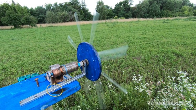 Самоделка-идея для тех, кто не знает как сделать простой и надежный ветрогенератор. Я предлагаю использовать в качестве оси для ветряка старый ротор (или якорь) от мотора. Это дает такие достоинства как готовый повышающий редуктор, нужно лишь накинуть ремешок на якорь и шкив мотора.