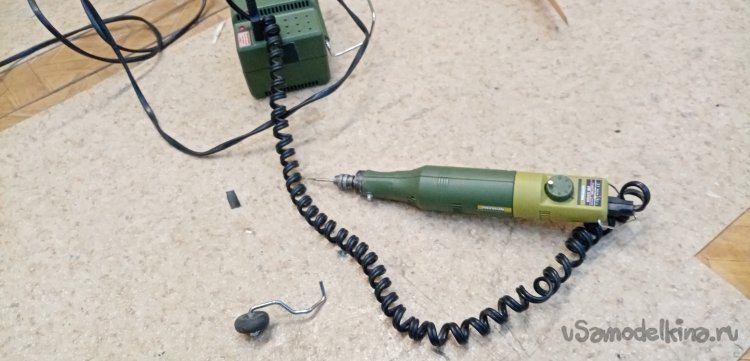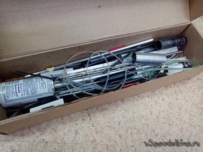 В качестве стойки шасси использую хромированные прутики, от какой решетки. Подозреваю из холодильника. Отрезаю нужный кусочек.