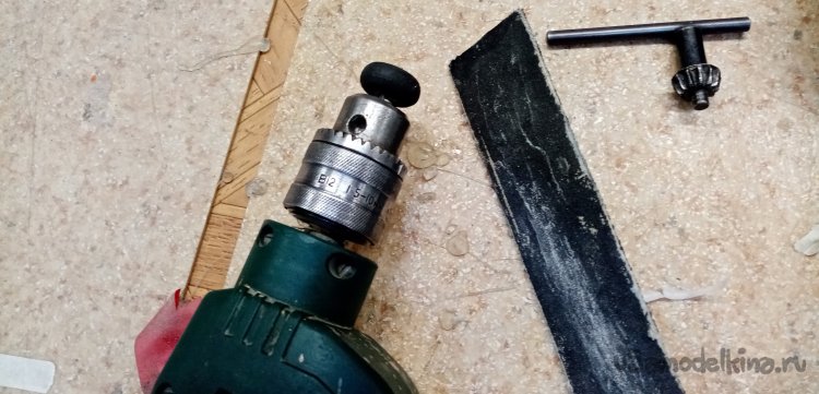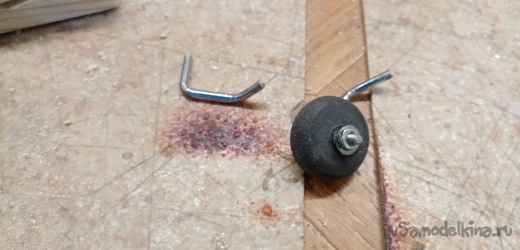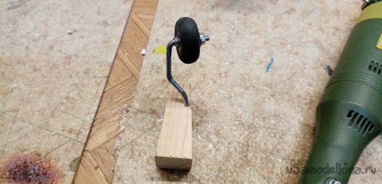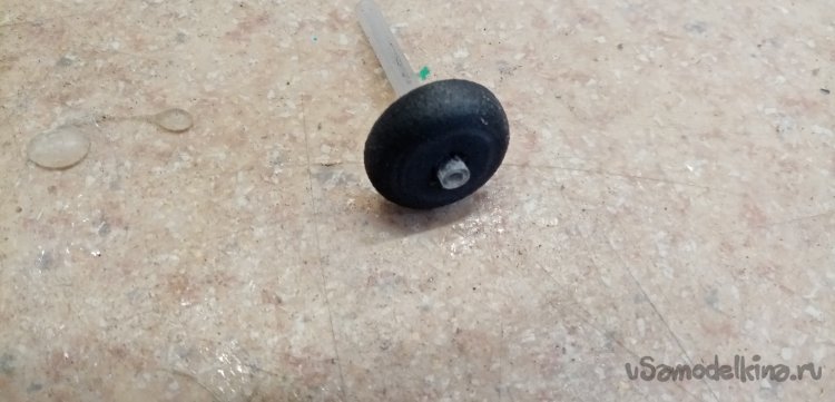 Длинный конец трубочки вставляю в шуруповерт, обрабатываю колесико при помощи утюжка со шкуркой.
