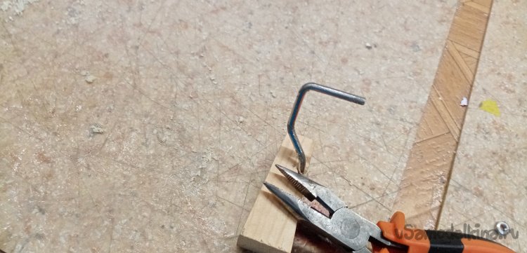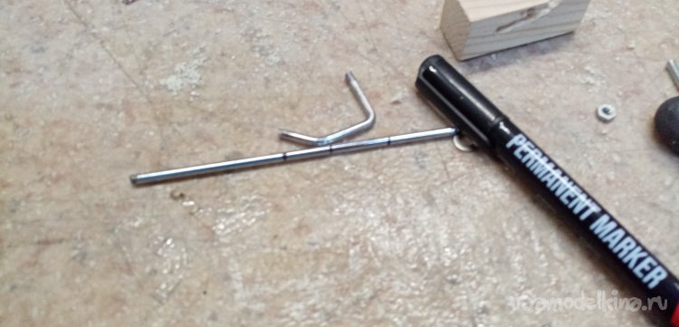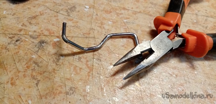 Новая стойка согнута, примеряю, теперь все ровно. Можно продолжать. Отрезаю лишнюю длину прутика.
