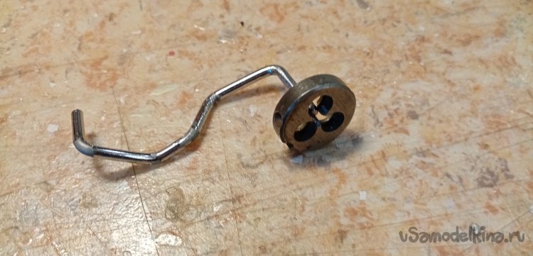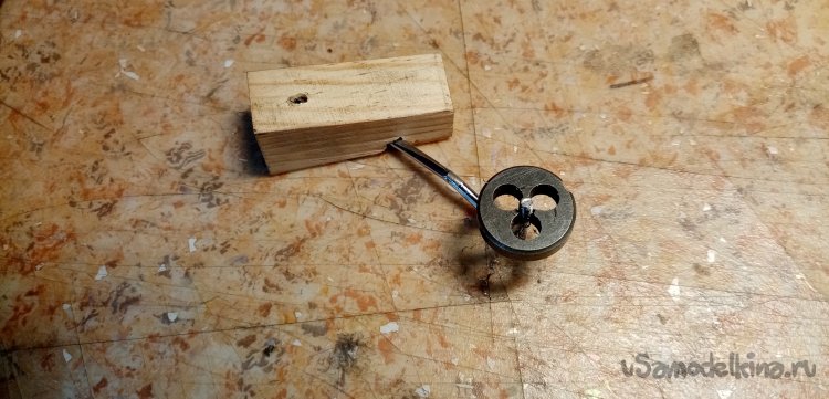 Нужно на кончике нарезать резьбу для фиксирующей гайки диаметром в два миллиметра. Нахожу нужную плашку.