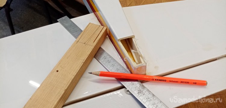 Подготовил карандаш, размечаю заготовку из деревянного бруска.