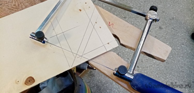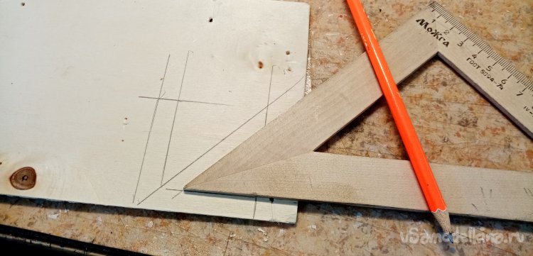На более ровном кусочке размечаю рамку изделия. При помощи треугольника с углом с 45 градусов и карандаша.