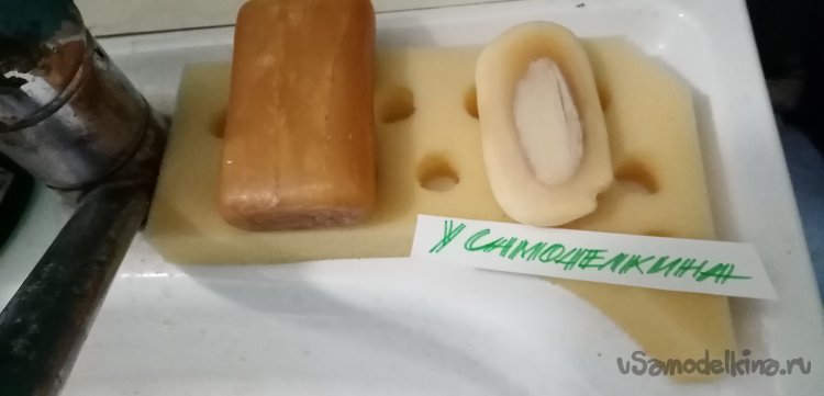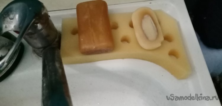 В предыдущей статье представил разработку «осушителя мыла» из упаковочного поролона. Некоторое время эксплуатации выявило существенный недостаток. Мыло с жесткого поролона скатывалось. И все конструкция норовила сползать с края раковины.
