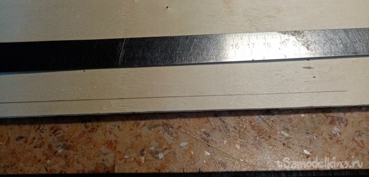 Нужно изготовить накладки усиления, что-то рамочка вышла гибкая. Вычерчиваю несколько прямых полосок, выпиливаю. Распиливаю в размер и приклеиваю с обратной стороны на клей ПВА супер столяр.