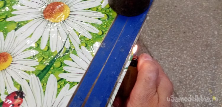 Процесс ремонта достаточно прост. Зажимаю край пластика в две металлические линейки. Оставляя кончик миллиметра в три. Затем зажигалкой оплавляю край, до образования красивого валика.