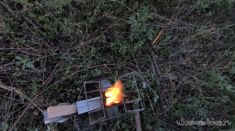 После обрезки пламя уже достает отлично, хоть нет уже того рева, который был при более длинной трубе. Решетка прикручена на проволоку, так как там какой-то цинк, который не хотел вариться.