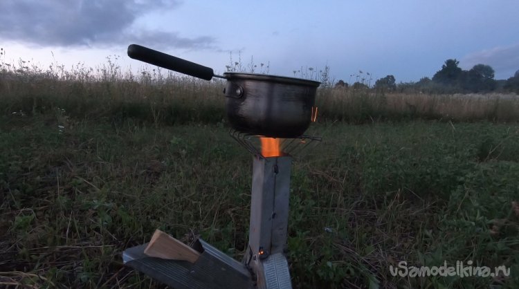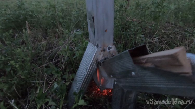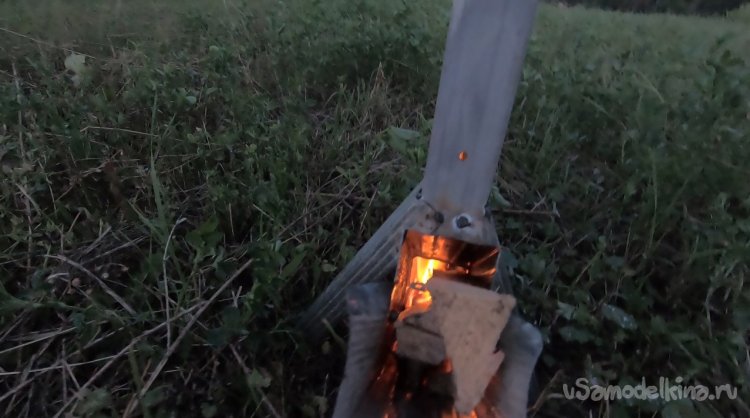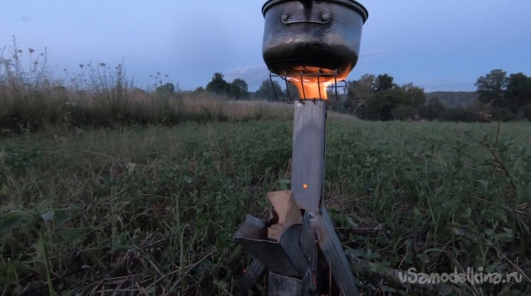 Пламя имеет очень большую температуру, вода нагревается быстро, а жарить вообще не проблема. Дрова иногда нужно пропихивать вперед, но все это мелочи.
