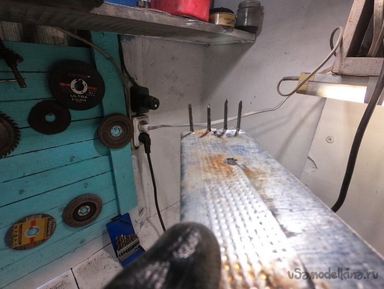 Для изготовления колосники использовал гвозди, делайте дырки как можно больше, вообще хватит одного-два гвоздя, уголь должен просыпаться вниз, он мешает печи "дышать" если нет дополнительных отверстий.