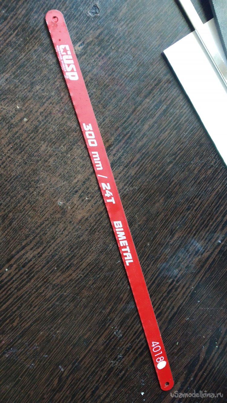 Итак, приступим. Для начала нужно отпилить от крупной латунной полосы маленькую полоску. Для этого я специально пошел в ближайший магазин за ножовкой по металлу. Ввиду того, что я не дочь олигарха, я взял самую дешевую за 149 рублей. Зря. Очень зря.