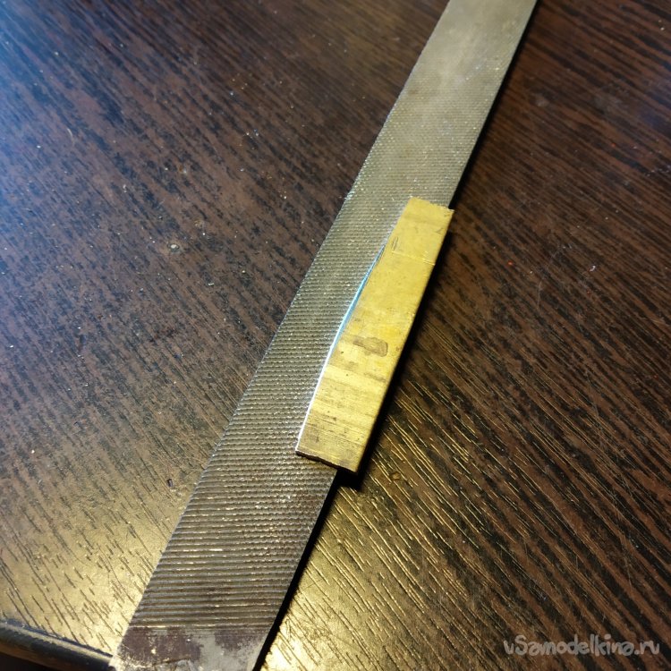 Обязательно нужно скруглять углы у заготовок, иначе можно набраться латунных заноз, а это вам не деревянные. Провел я эту манипуляцию родным советским напильником, коих закупил где-то 35 штук у одного хорошего человека на рынке. Ладно бы еще ржавых, так абсолютно новых с клеймами и в масле. Причем по 35 рублей вроде за штучку. По поводу ржавчины – подржавел он уже у меня, коробка намокла.