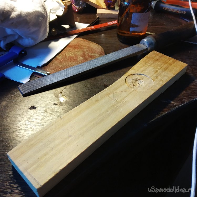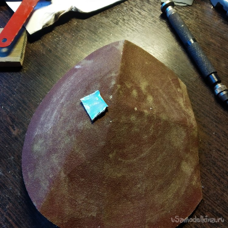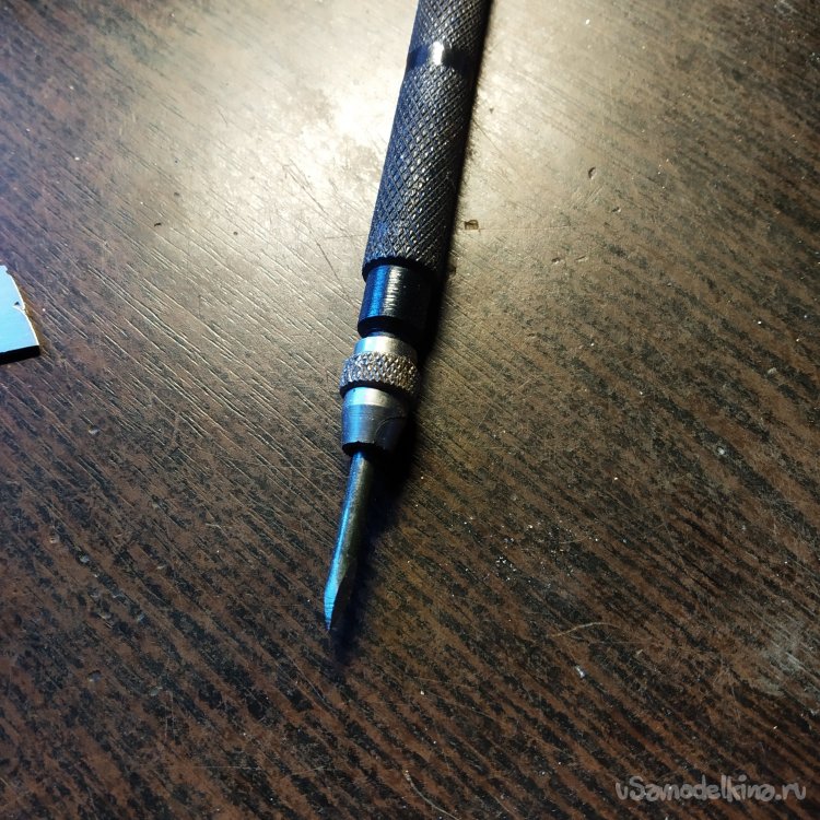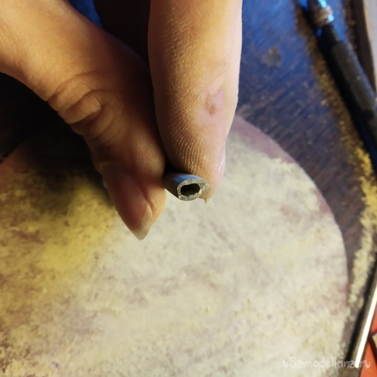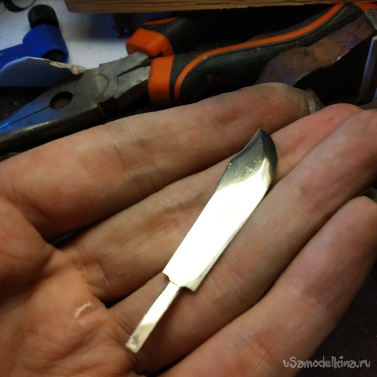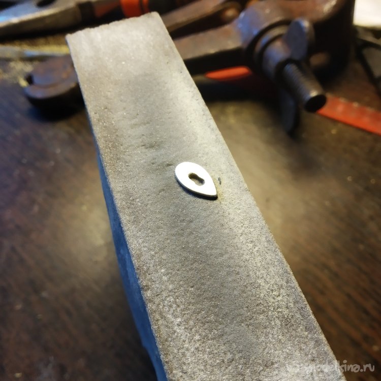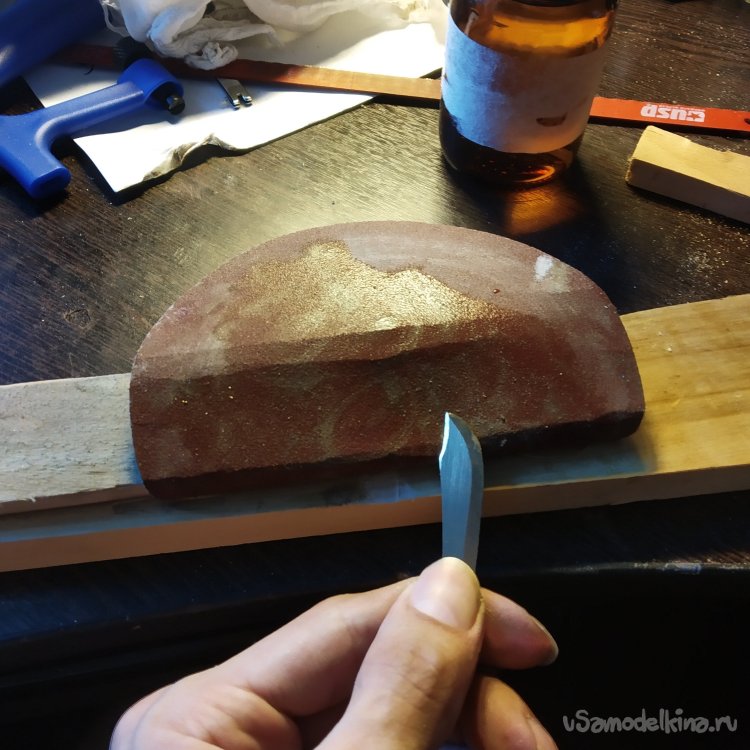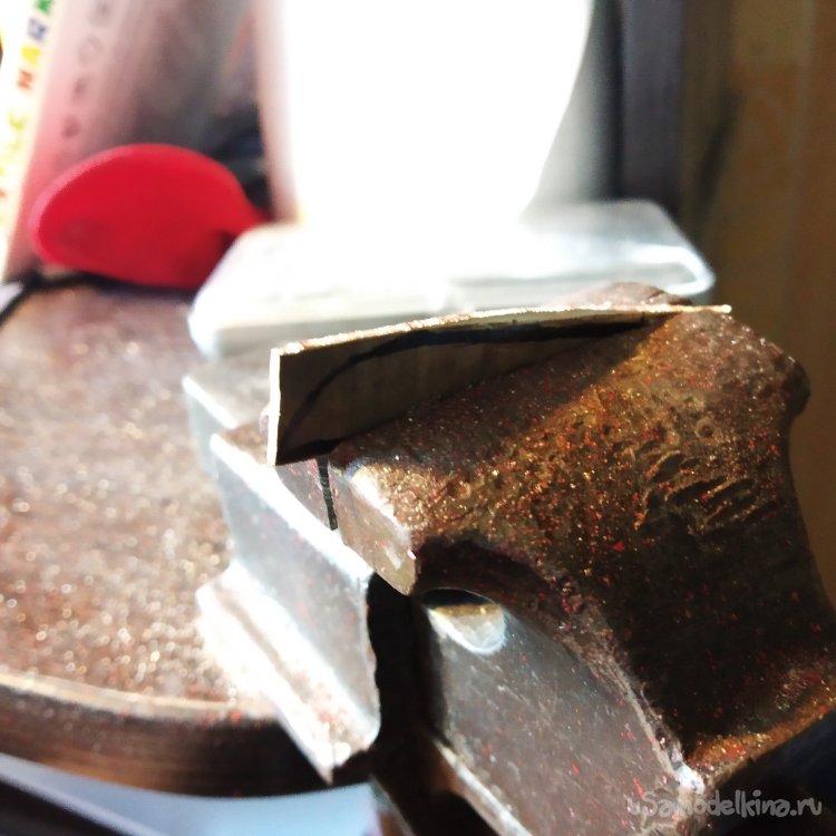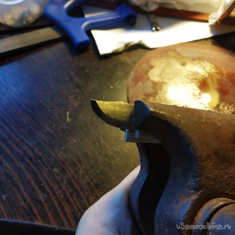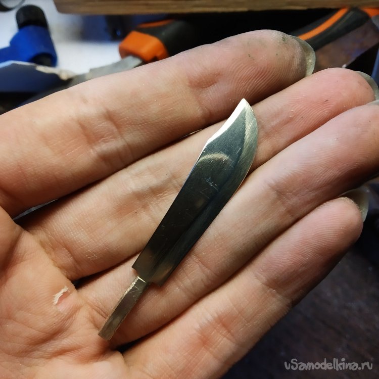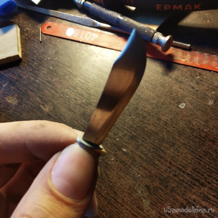 Этот кусок я выпрямил в тисках и прошлифовал, приклеив к пальцу на двусторонний скотч.