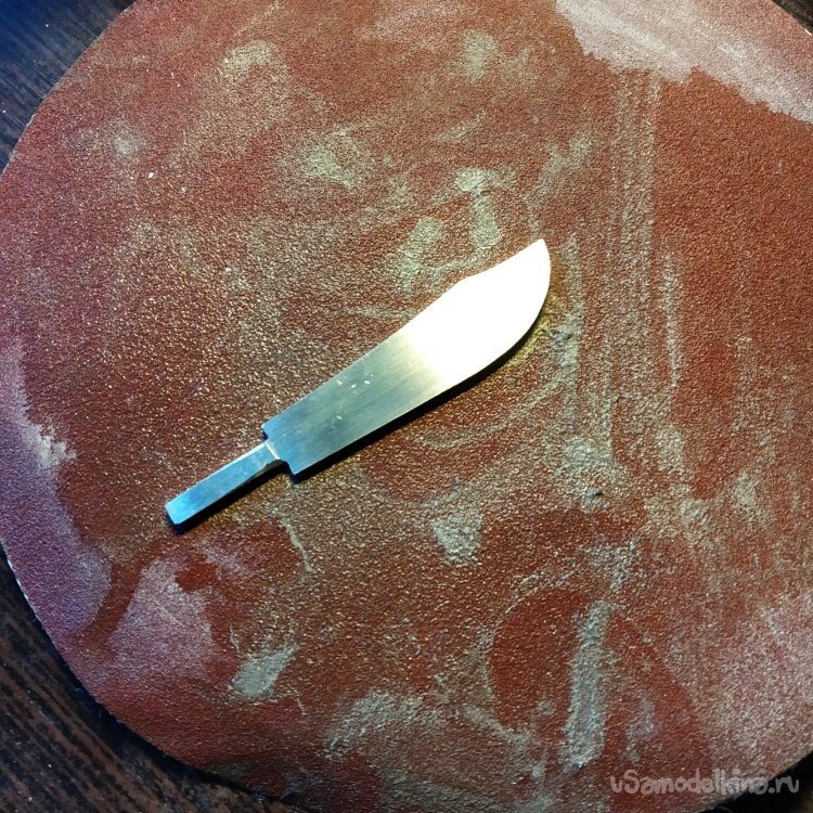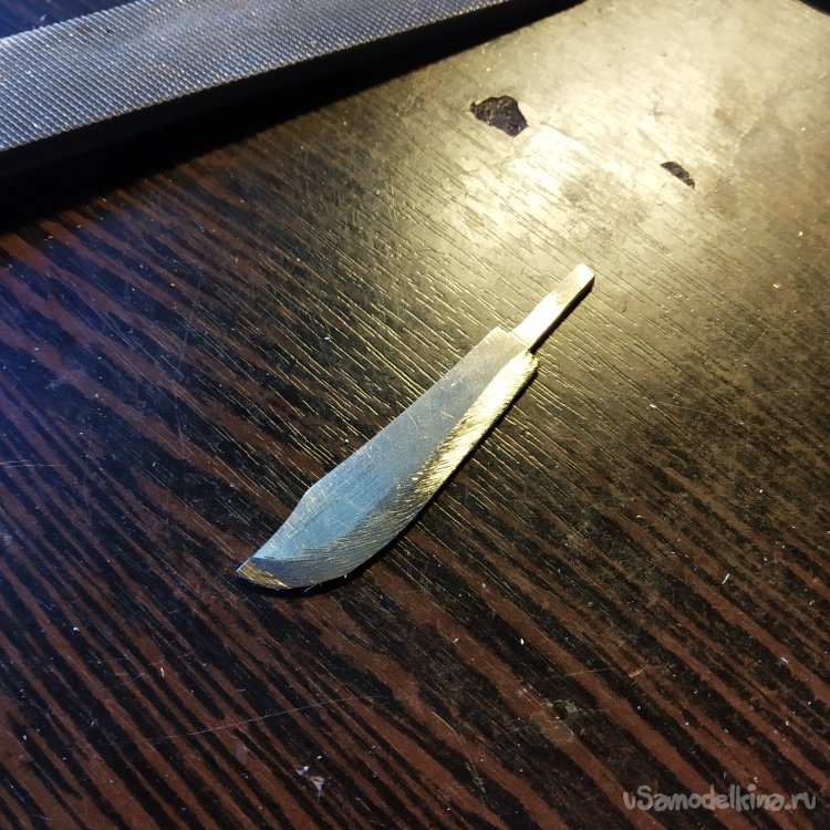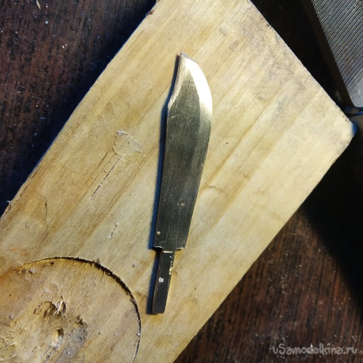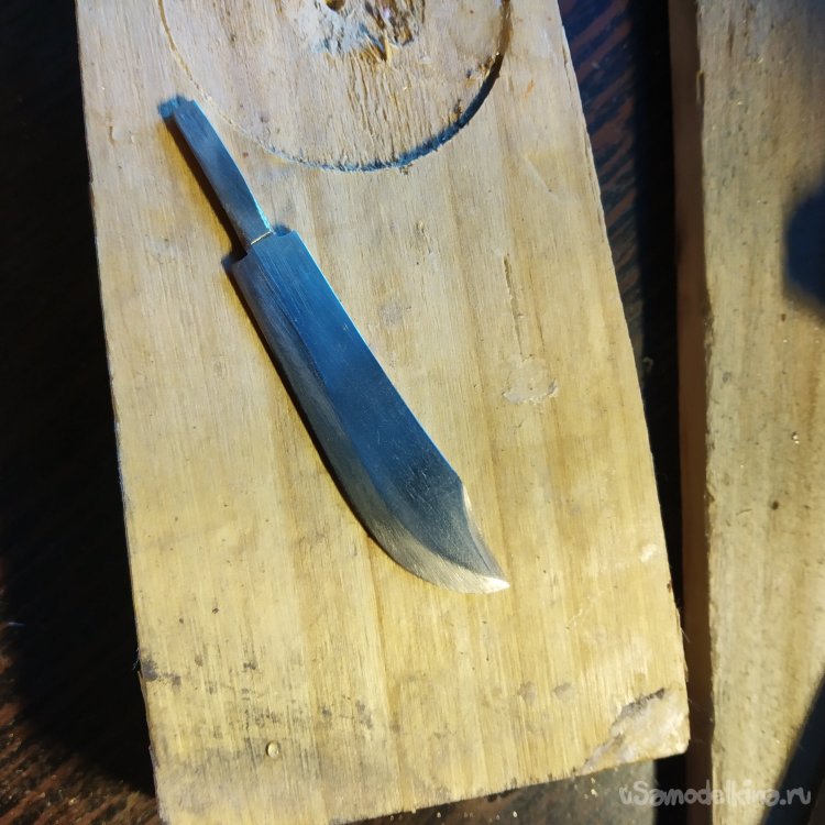 И напильником сделал спуск сначала на одной стороне, а затем на другой. Тут главное не переусердствовать и не свести клинок в ноль, иначе кромка сомнется при шлифовке, если переживет еще обработку напильником.