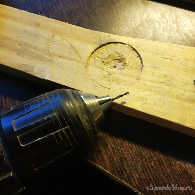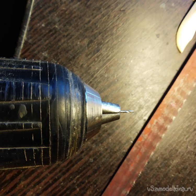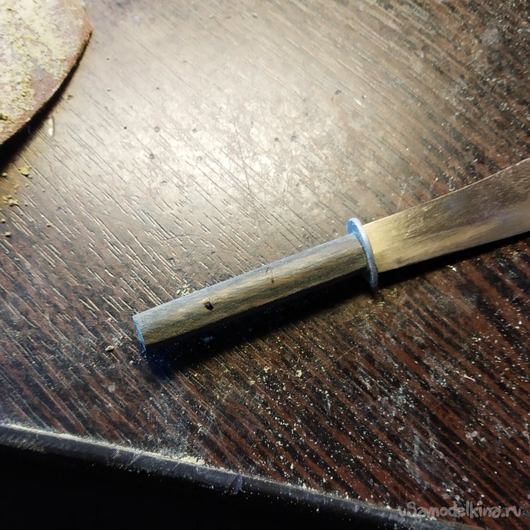 Теперь нужно установить кольцо, свойственное для подобного рода мечей. Для этого я просверлил отверстие на 1мм в другом торце рукоятки.