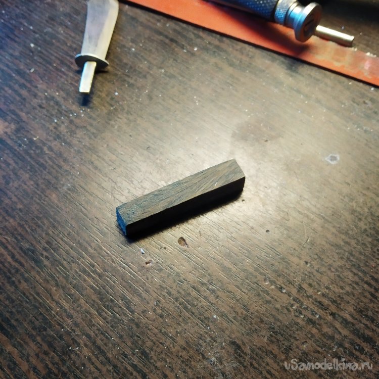 Брусок, если его можно так назвать, я просверлил под хвостовик и привел его к примерной форме рукояти. Сделать это было трудно, порода считается не только одной из самых дорогих, но и одной из самых твердых в мире.