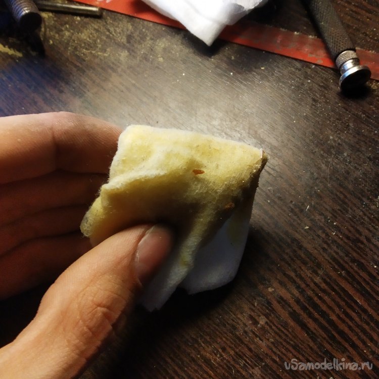 Ну а теперь.... нет, не сборка. Полировка. Начать я решил с куроятки. по ней я просто прошелся 320 наждачкой и полировальной губкой. Сандал полируется моментально.