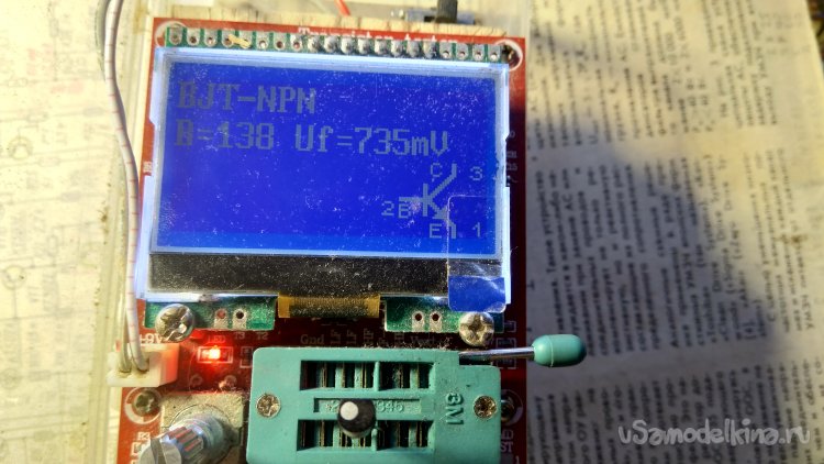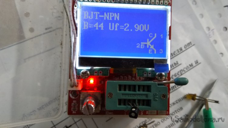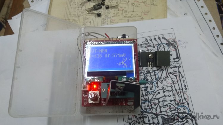 Детальки проверяю тестером HilandM644. У меня не М328, а на ATMega644, но это не принципиально какой именно тестер, их много модификаций, но они реально облегчают диагностику и ремонт. Сейчас ещё и цена их упала, рублей 800 стоят, но вещь незаменимая. Обычным тестером не всегда удаётся определить, что именно не так. Вот как например уровень запирания транзистора, или аномальный коэффициент усиления, да и просто утечку конденсаторов и их внутреннее сопротивление.