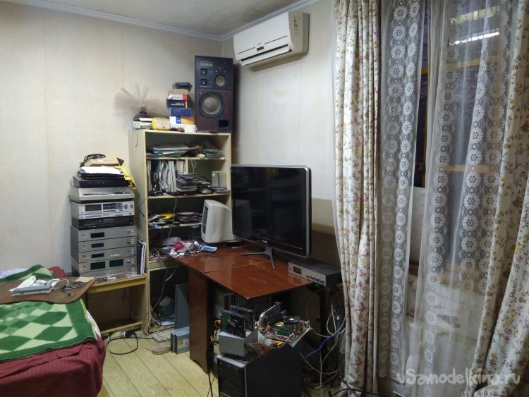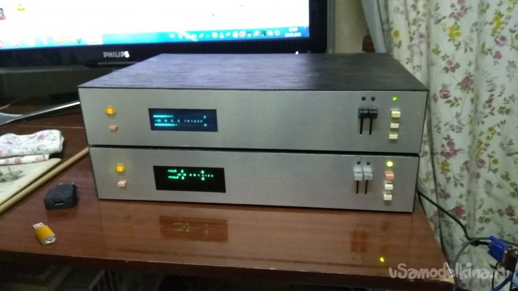 Тут на столе ещё старый усилитель, с ЭМОС, это активное демпфирование диффузоров.