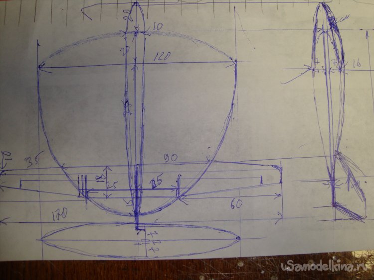 Для постройки этой авиамодели я использовал вот эти рисунки- чертежи и свой рабочий чертёж с размерами.