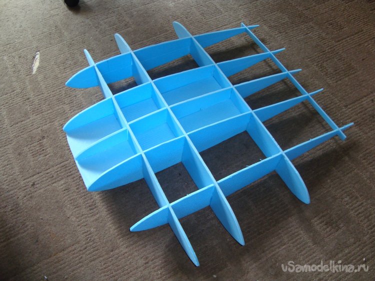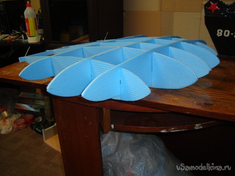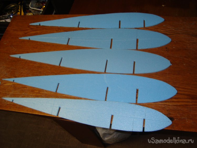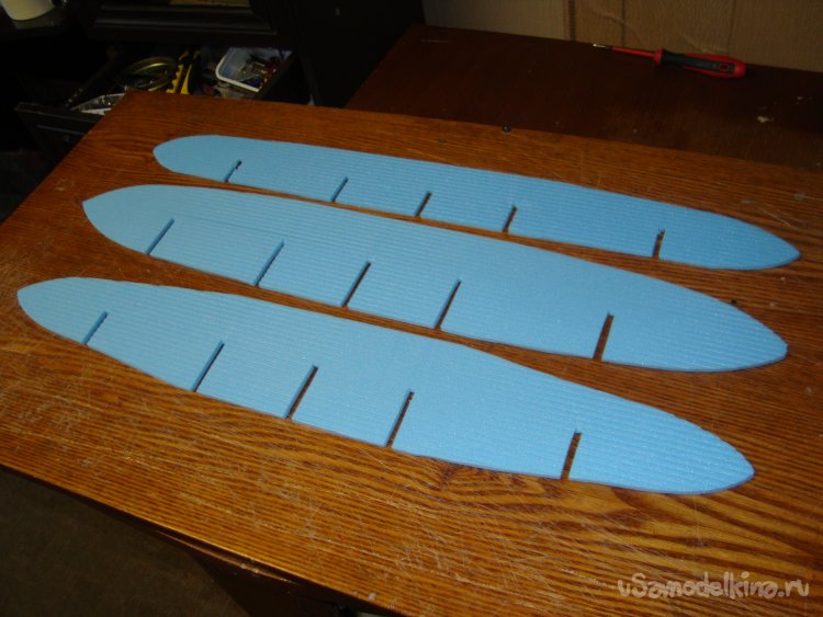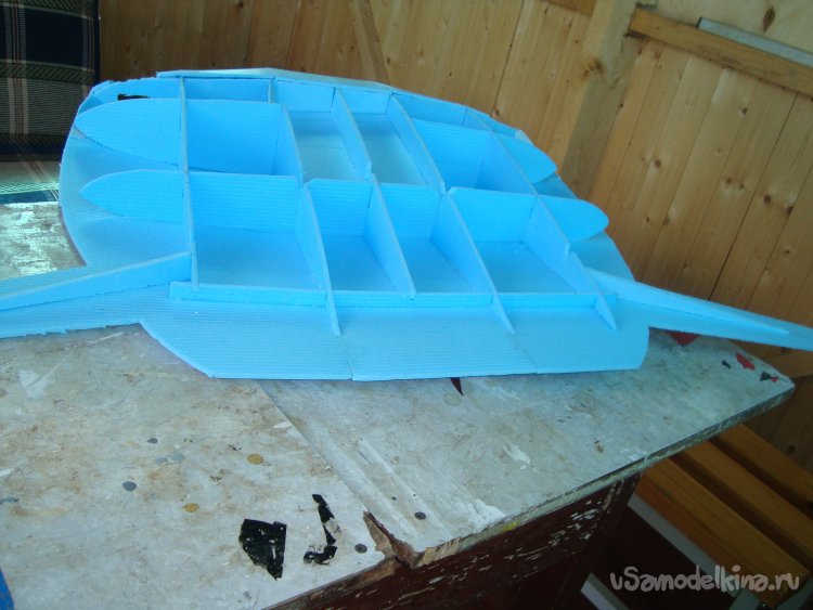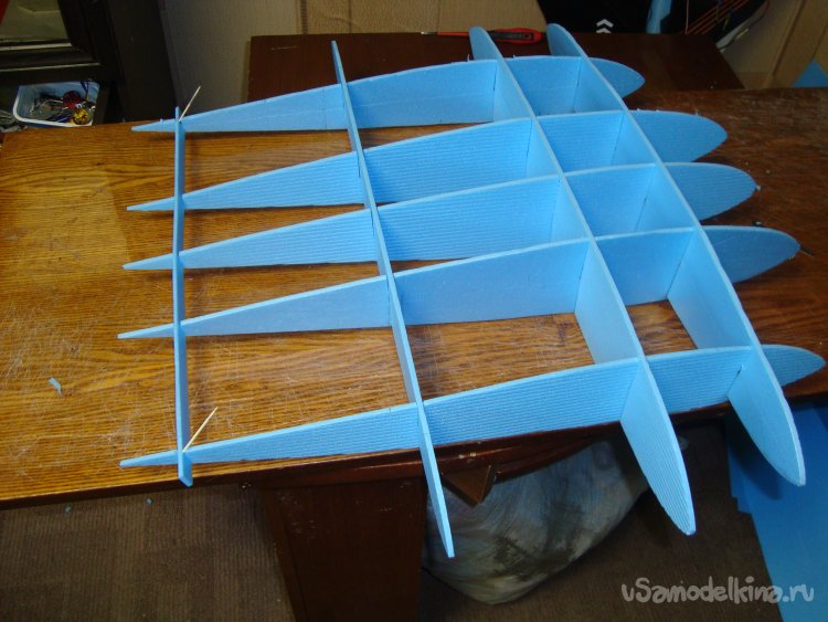 Создание начал с вырезания внутренних перегородок в крыле -лонжероны и нервюры.