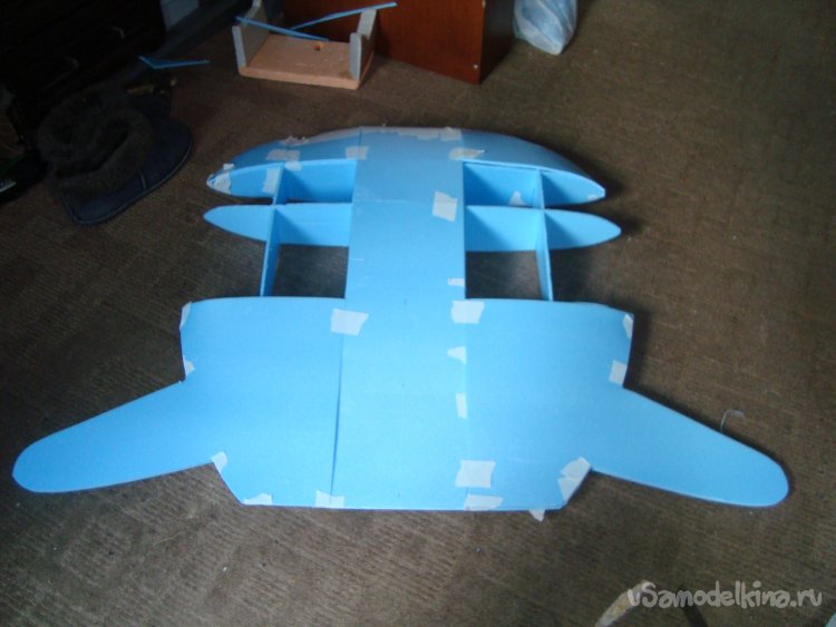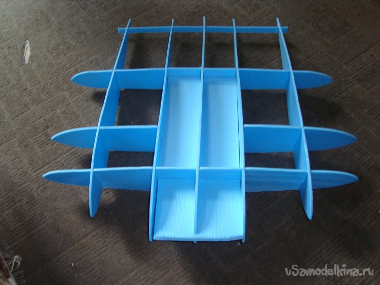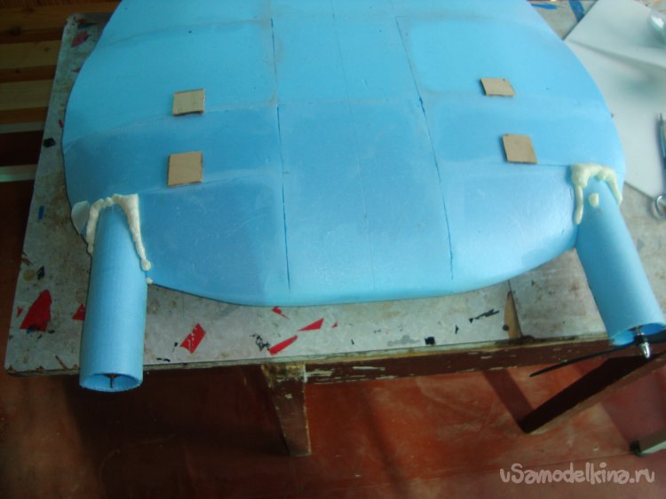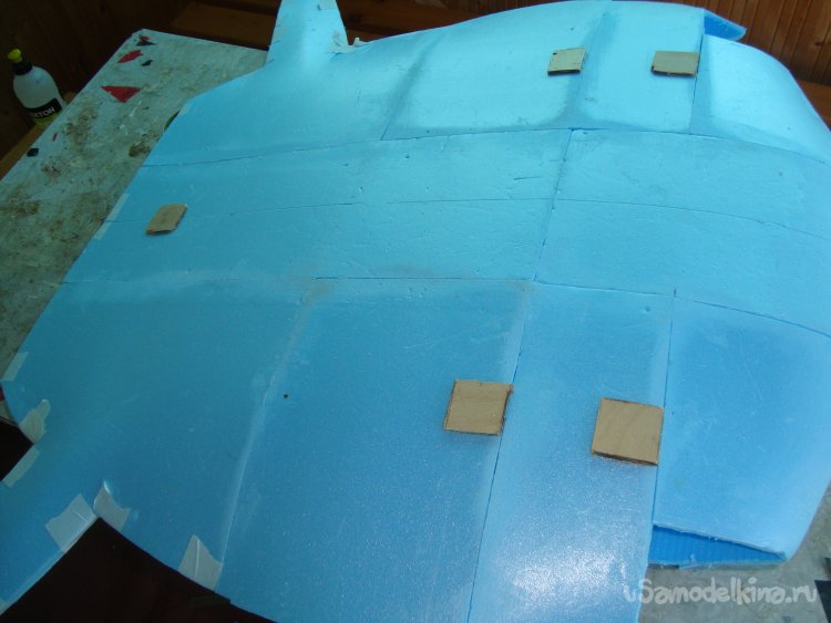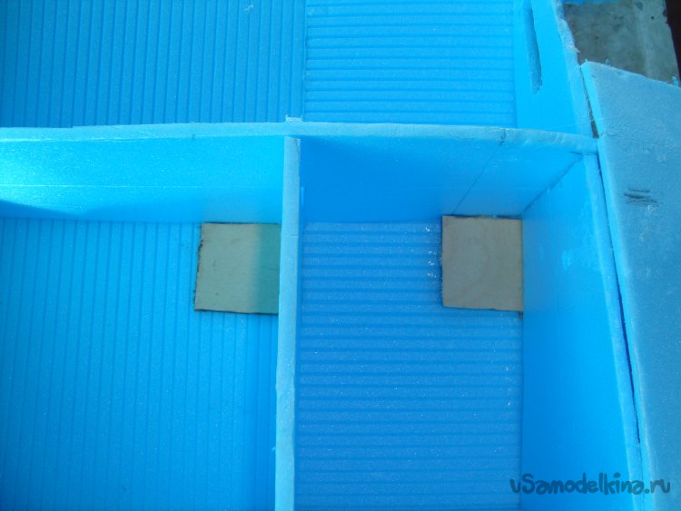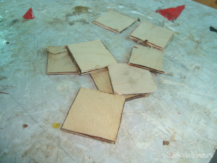 Для установки шасси вырезал кусочки 3 мм. фанеры.