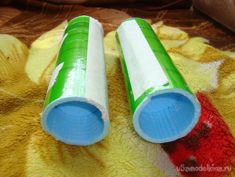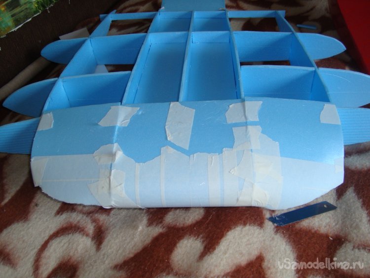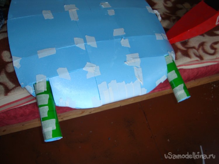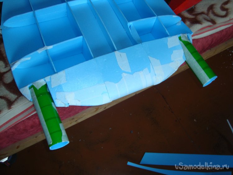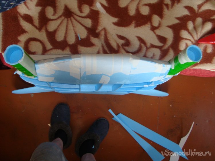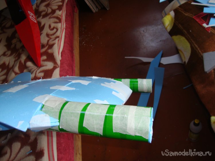 Вырезаю заготовки для мотогондол, обтягиваю скотчем и склеиваю.