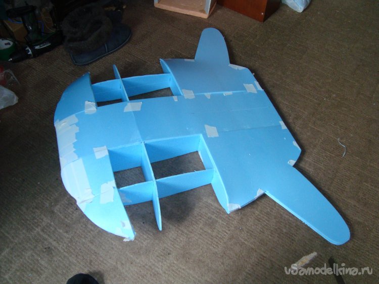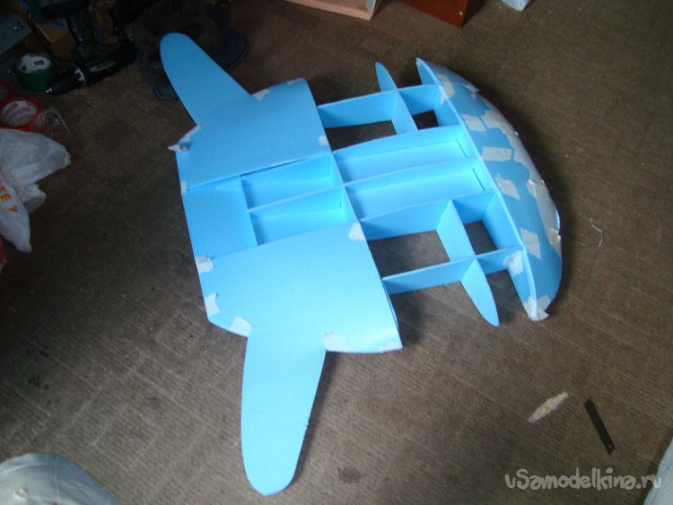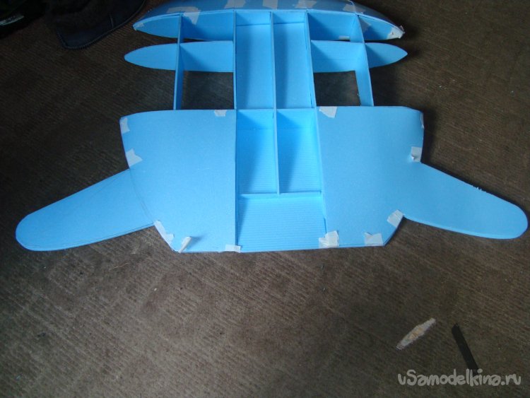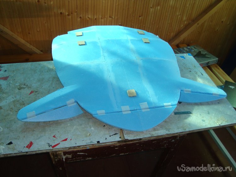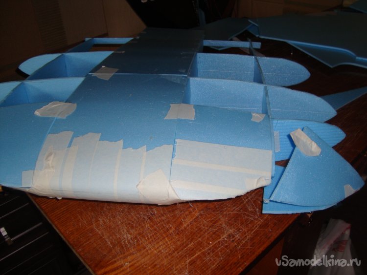 Использую бумажный, малярный скотч, навешиваю элероны и руль высоты.