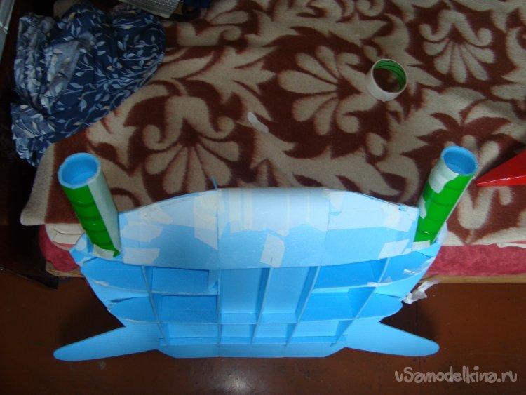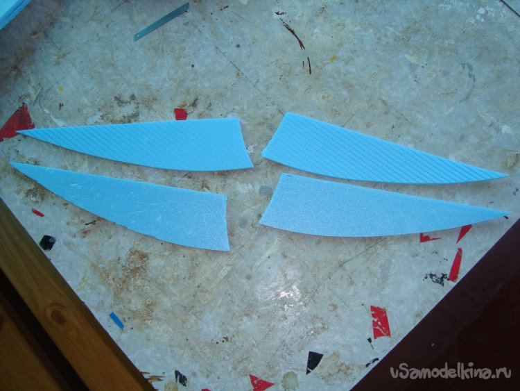Из двух слоёв подложки вырезал кили, склеил и смонтировал на место.