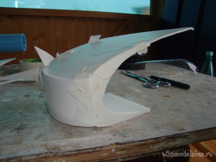 Делаю заготовку для кабины пилота в самой носовой части фюзеляжа.