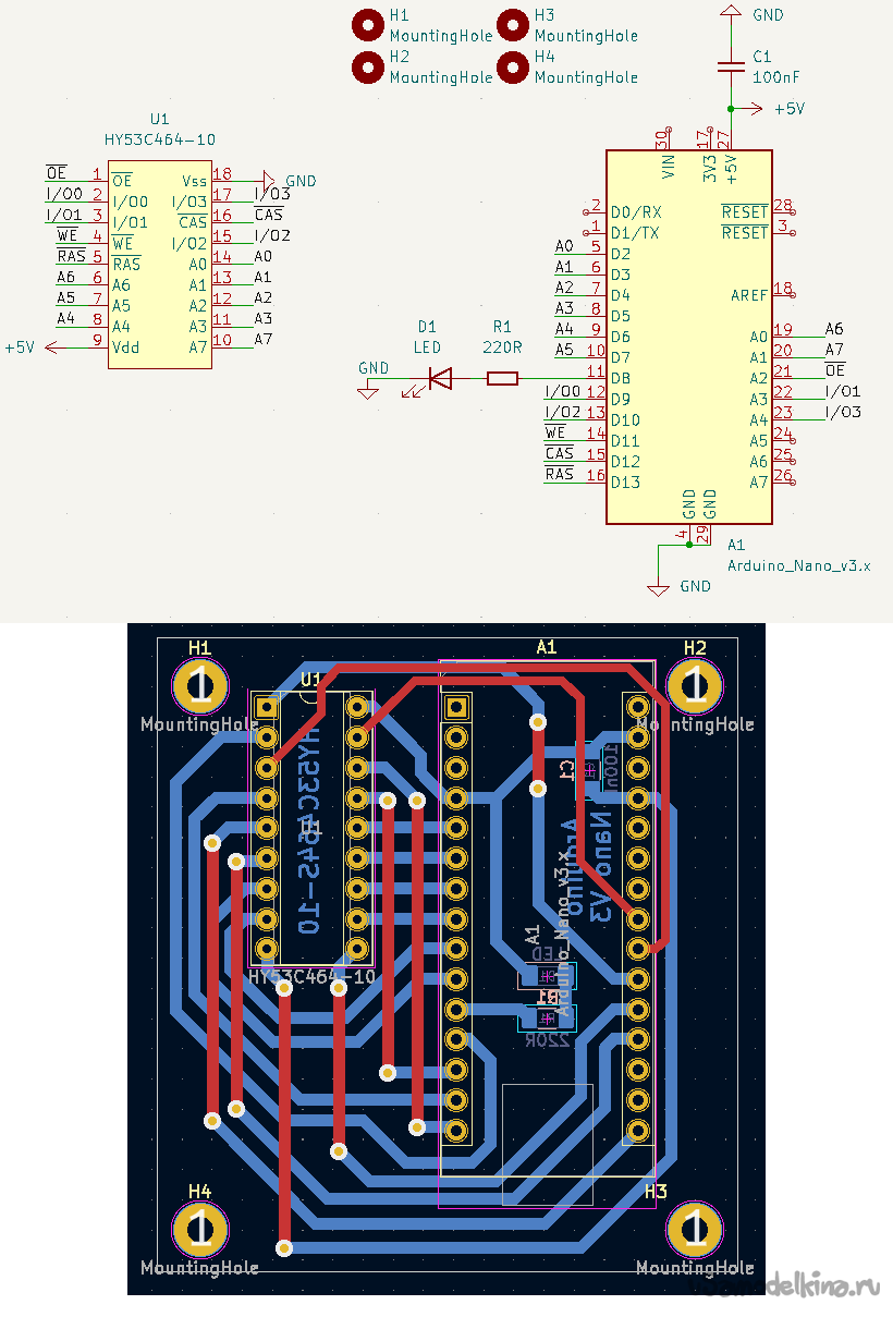 Я не первый, кто пытался воскресить DRAM с помощью Arduino. Существует несколько аналогичных проектов для работы с еще более старой памяти DRAM 4164:
