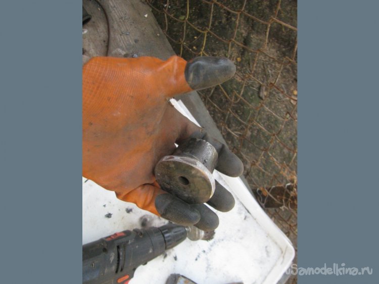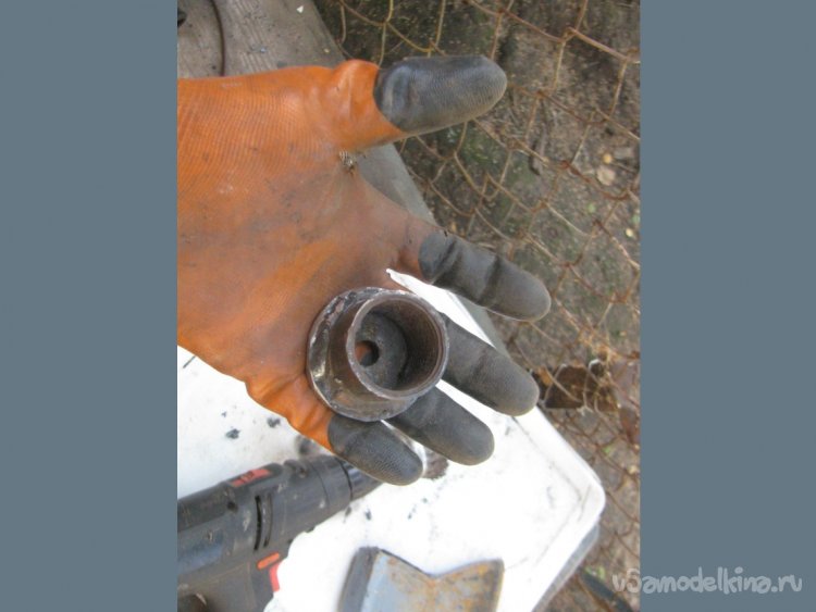 Далее понадобится сделать крышку, у меня была муфта, к ней также приварил заглушку и просверлил отверстие под электрод. Теперь мы получили отличный прочный корпус для генератора.