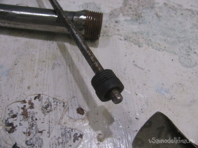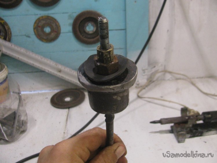 Изготавливаем центральный электрод, подойдет резьбовая шпилька, у меня нужной длины не было, так что я приварил еще кусок просто шпильки. Электрод не должен замыкать на "корпус", то что подкладываем резинки, подматываем изоленту и так далее. На конец электрода изготавливаем ограничитель, который не позволит электроду соприкасаться с корпусом. Вот и все, теперь генератора почти готов.