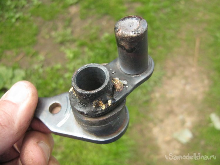 Фото 3. Стальные детали спаянные латунью с флюсом – порошком буры. Латунь – штырьки-контакты от старых советских сетевых электровилок.