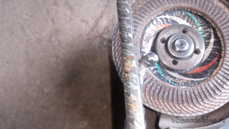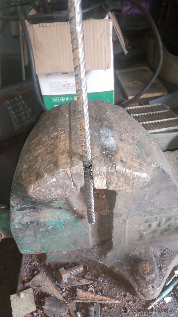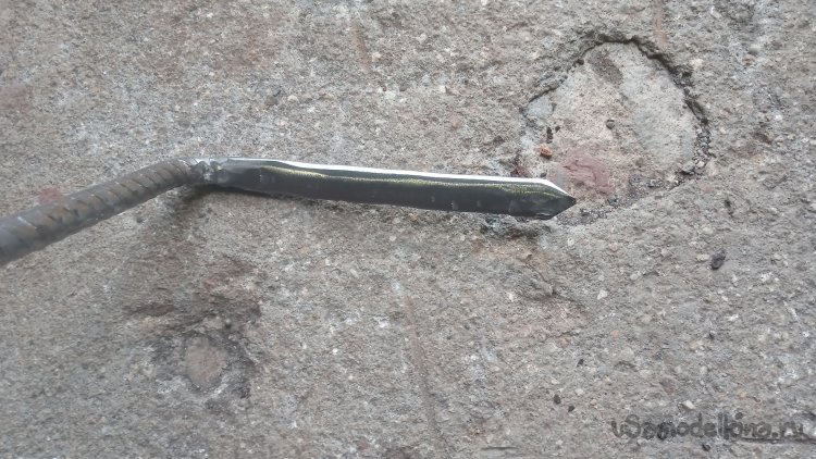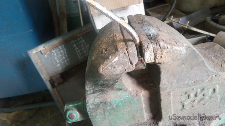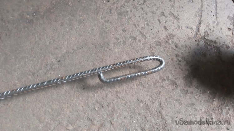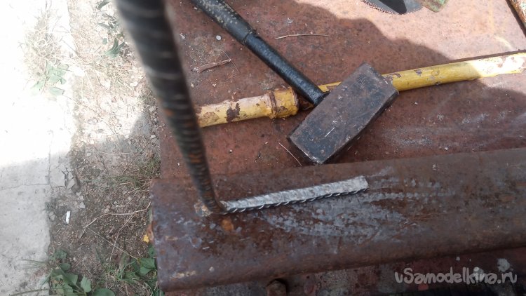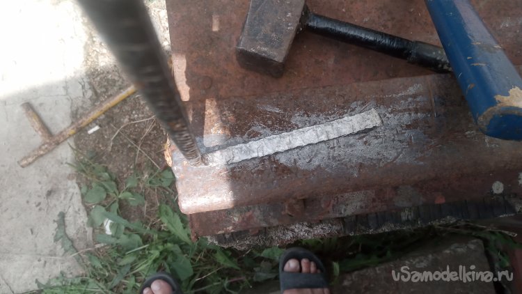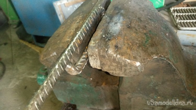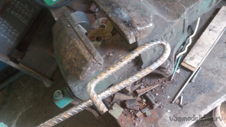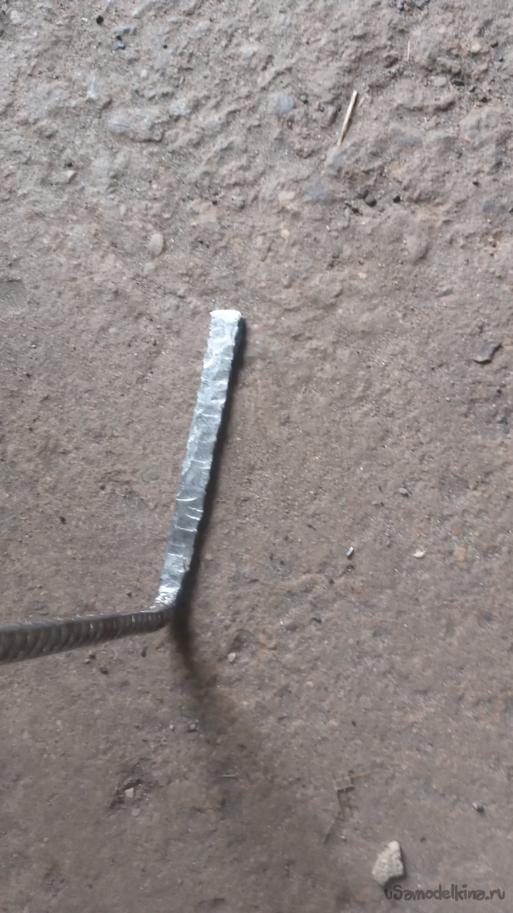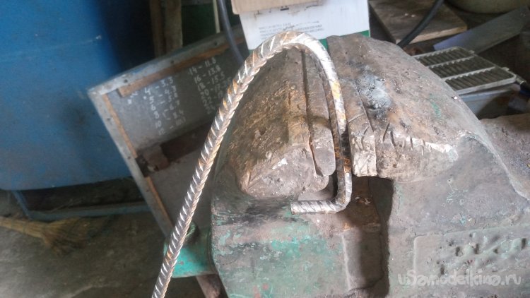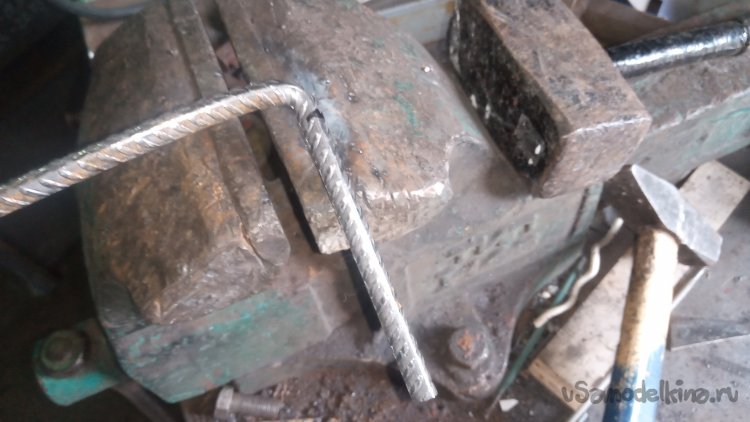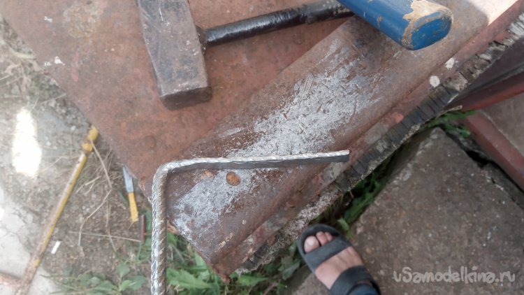 Конец арматуры загнул в тисках кувалдой на 90 градусов: