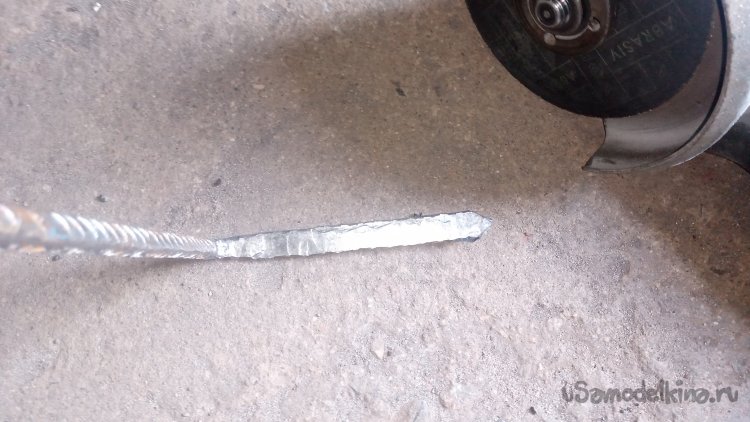 Теперь сформировать конец крюка. Я люблю, если он заострённый. Так им легче отбивать прогоревшие угли с толстых полен: