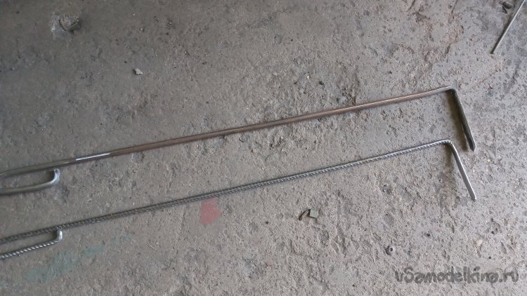 И то, и другое было бы крепче моей арматуры и легче моего прутка.))). Но, что есть, из того и будем делать. Решил, всё-же, сделать из арматуры.