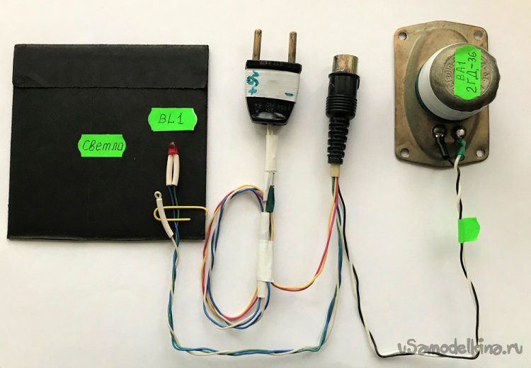 Устройство ЧКП5 в комплекте с дополнительным оборудованием. Не подключённый белый провод (над жёлтой скрепкой) является резервным. Конец этого провода свёрнут в петлю, а его облуженная часть заправлена в ПВХ-трубку.
