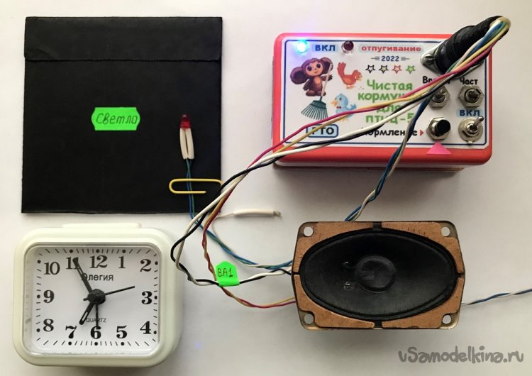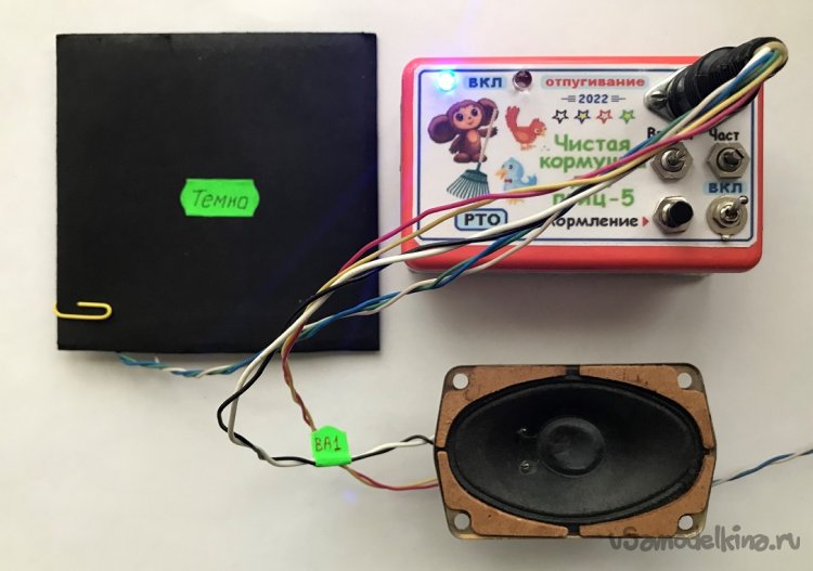 2). Дополнительно можно форсировать отпугивание птиц, нарушающих пищевой регламент, если покрутить «туда-сюда» ручку переменного резистора «Частота».
