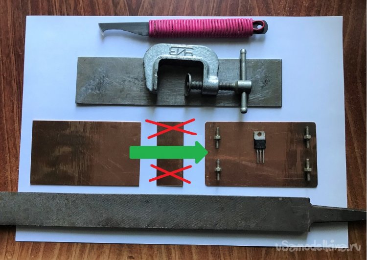 Первые включения ЧКП5 показали, что поделка перегревается. Поэтому в конструкцию ЧКП5 пришлось ввести охлаждающий радиатор из листовых пластин размерами 100 х 60 х 1 мм.