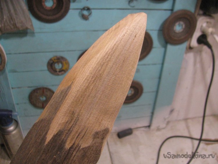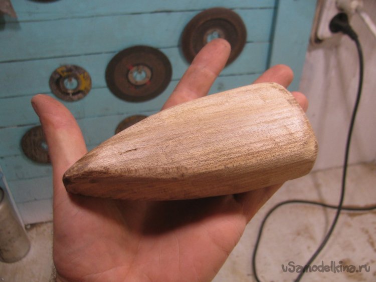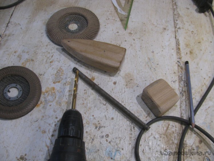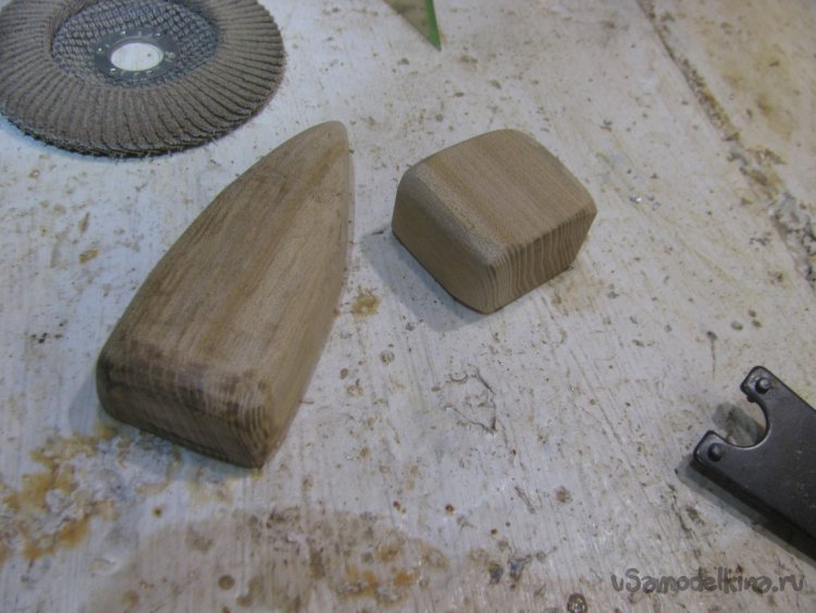В качестве материала я использовал дуб, такая древесина будет долго служить даже без пропиток, а еще она прочная и имеет красивую текстуру. Форму задвижки я сделал классическую, в виде своего рода треугольника. Обрезал в нужных местах брусок, ну а далее вышлифовал лепестковым диском на 80. Конечно, на больших оборотах древесина будет подгорать, так что лучше сильно не нажимать.