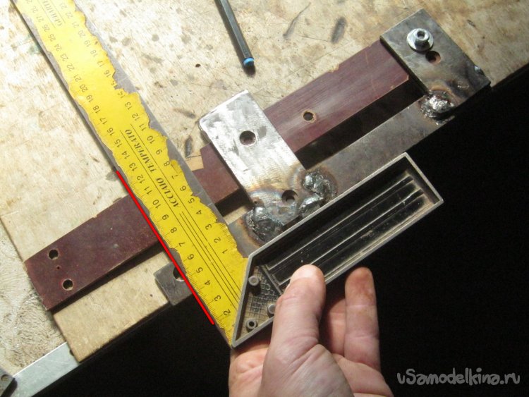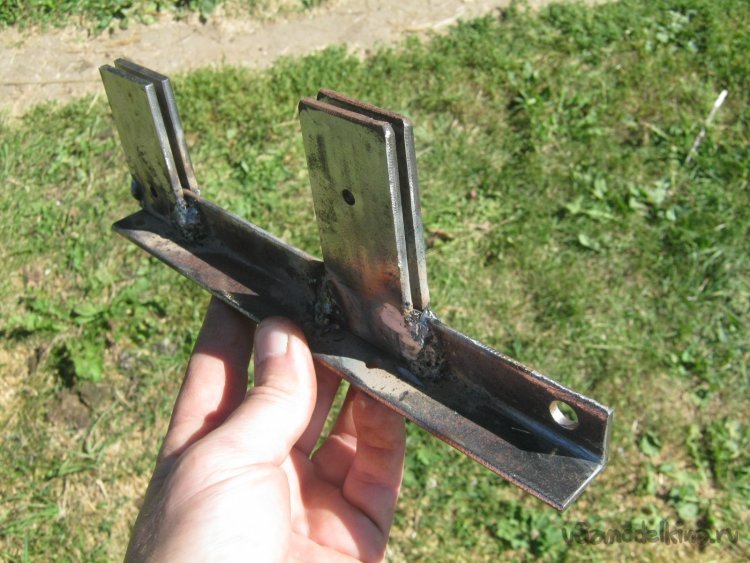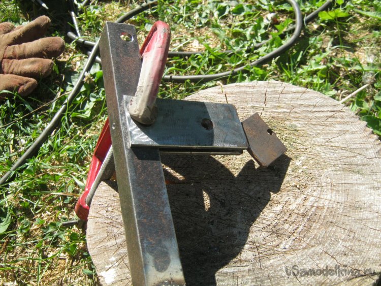 Фото 5. Сборку металлической части механизма делал дуговой сваркой 3 мм электродами. Детали перед сваркой тщательно устанавливал и фиксировал. На фото – установка направляющих для текстолитового рычага.
