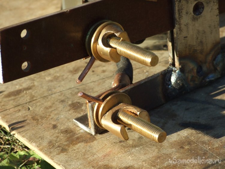 Фото 8. В качестве временной, на период испытаний, оси применил кусочек резьбовой шпильки М 6 с парой гаек и шайб. В рабочем варианте, лучше применить гладкую ось.