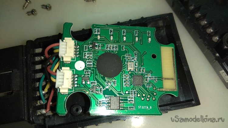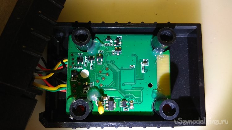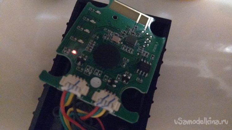 При включении питания проходит тестирование индикаторных светодиодов, похоже сканер работает. Фиксирую плату сканера в корпусе термоклеем. Заодно фиксирую проводок.