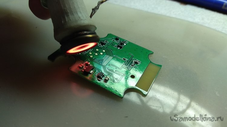 Маленький фен я до сих пор не приобрел, ремонтами занимаюсь редко, большим строительным будет неудобно греть маленькую плату. Воспользуюсь для демонтажа стабилизатора прикуривателем. Инфракрасное излучение прикуривателя прекрасно прогревает детали, плату и не сдувает мелкие элементы.