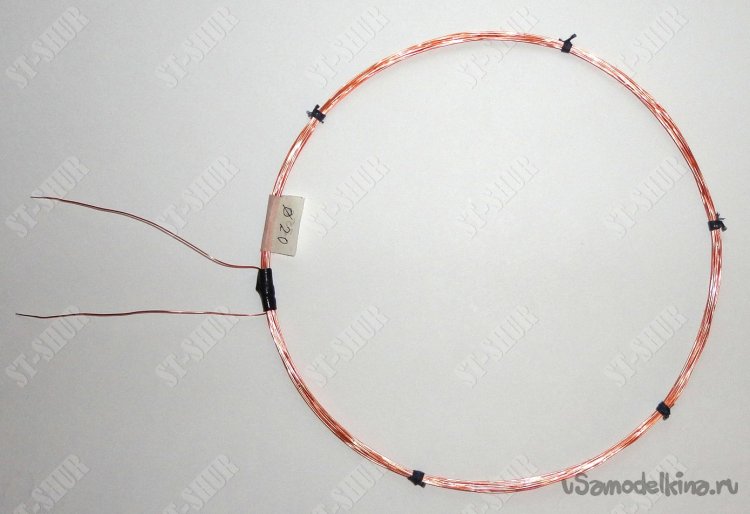 Проверочная поисковая катушка была намотана на оправе диаметром 20см и содержит 25 витков медного провода типа ПЭВ диаметром около 0.65мм, который был взят от катушки размагничивания древнего кинескопа.