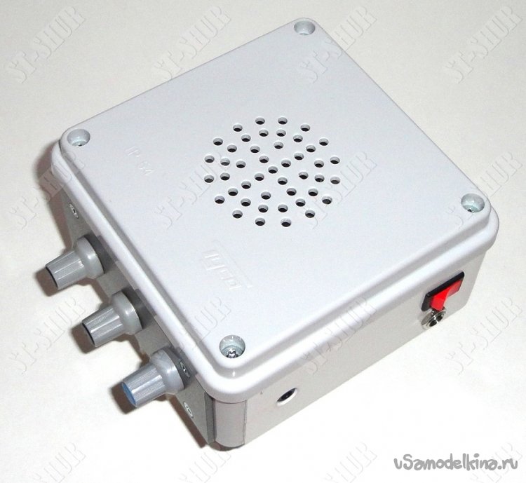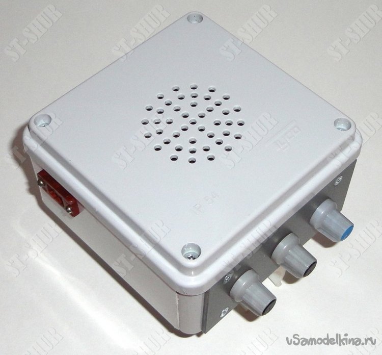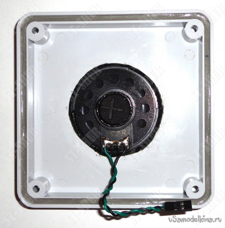 На данный момент в конструкции применен динамик диаметром 50мм в легком пластиковом корпусе, который закреплен на крышке корпуса с помощью термоклея.