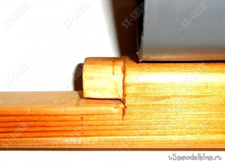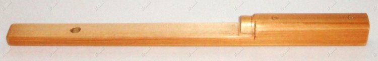 Пластиковая трубка, пока что, достаточно надежно крепится к алюминиевой телескопической штанге с помощью деревянного клинышка, изготовленного из круглого профиля диаметром 12мм.