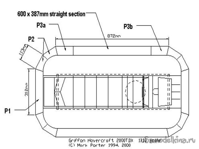 Выкраиваю фрагменты внешней обшивки крыла – центроплана в хвостовой части модели. вырезаю отверстия для доступа воздуха в воздушную подушку. подгоняю и монтирую