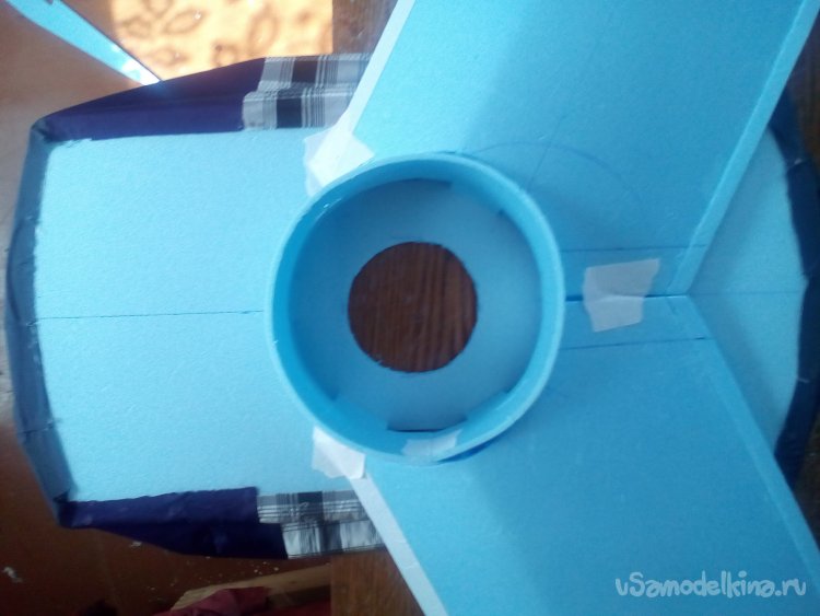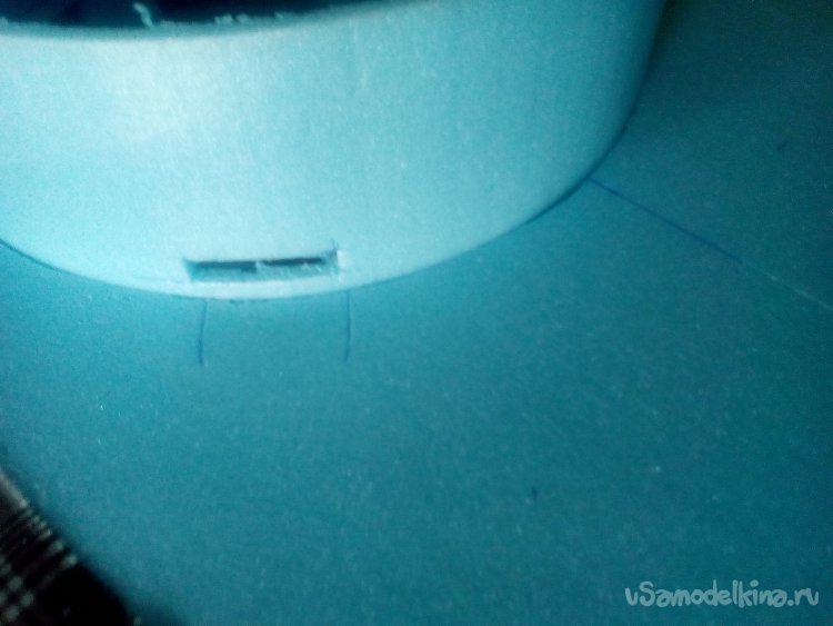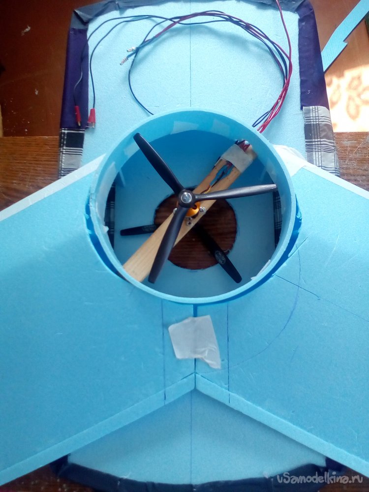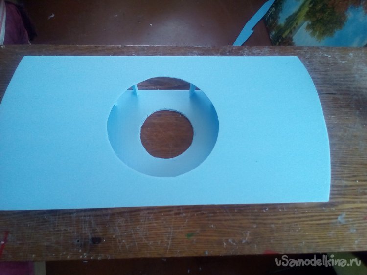 В обечайке прорезал отверстия для вклеивания деревянной рейки сечением 30 х 5 мм,, на которую будут монтироваться моторы.